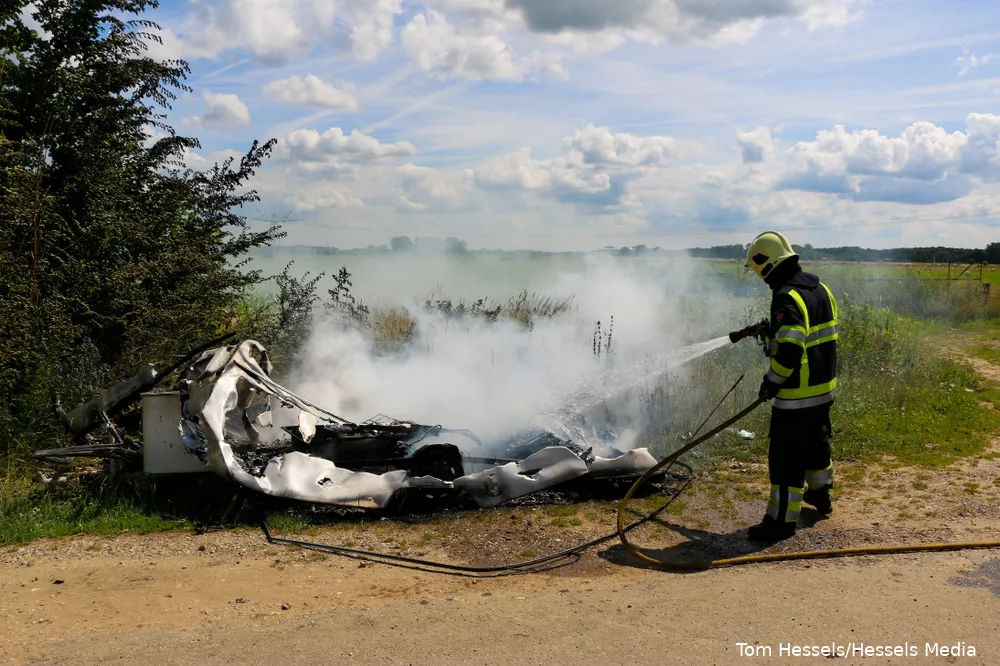 Brandweer en politie waren snel ter plaatse. De brandweer kon bij aankomst niet veel meer doen dan de brandende resten nablussen. De caravan kan als verloren worden beschouwd.