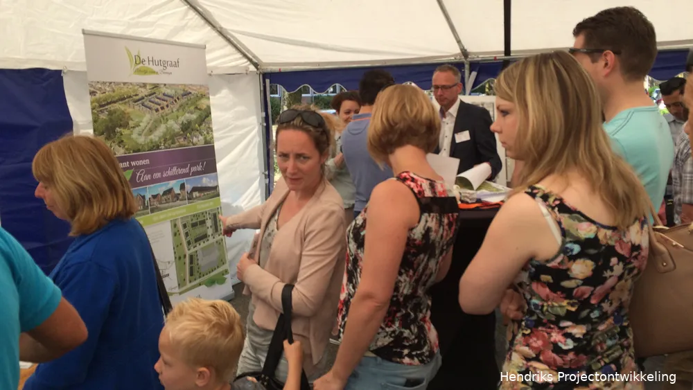 Veel woningzoekenden kwamen op de verkoopmanifestatie van De Hutgraaf af. Het prachtige weer en de aanwezigheid van een lokale ijscokar zorgde voor een ontspannen sfeer. Bezoekers konden zich uitgebreid laten informeren over de woningen door de medewerkers van Driessen Makelaardij en Hendriks Projectontwikkeling. Het wonen aan het centraal gelegen park op een steenworp van het centrum viel goed in de smaak.