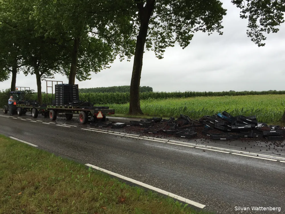 De kratten met fruit rolden de hele weg over en het verkeer moest worden omgeleid. Omdat het voorval zich vlakbij de gemeentewerf afspeelde konden de aanwezige gemeentemedewerkers snel starten met het opruimen van de straat. Over de oorzaak is nog niets bekend.