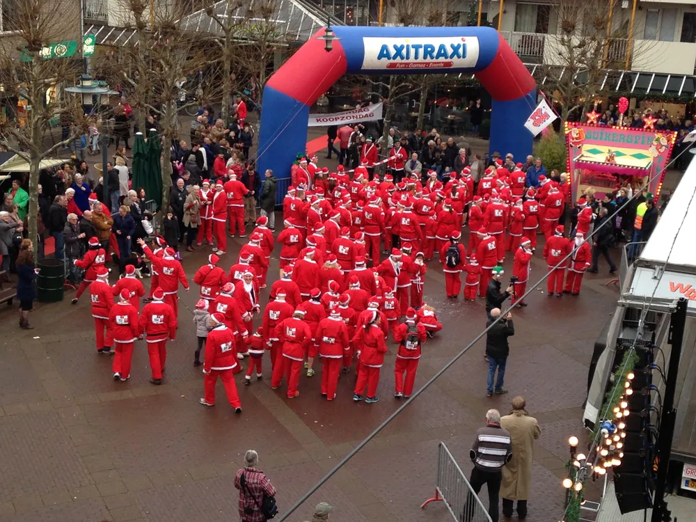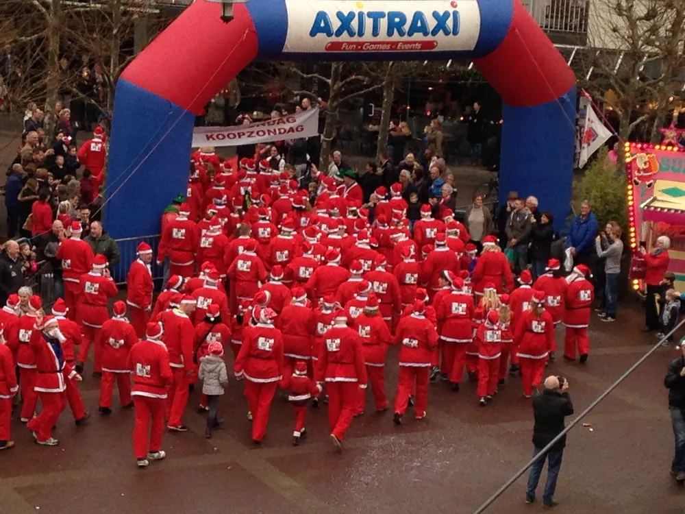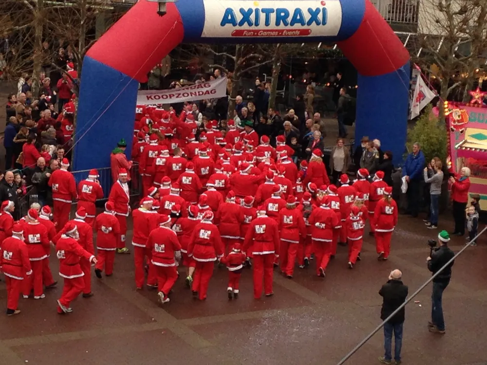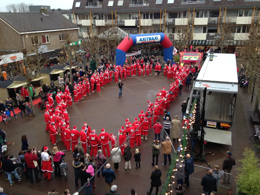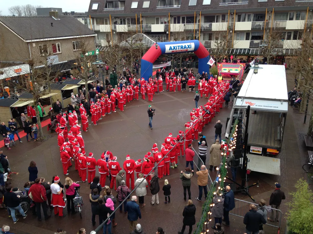 Om 15.42 uur starten honderden Santa’s vanaf het Julianaplein met een 3 kilometerslange loop. Er is vandaag in totaal € 3000 voor de voedselbank en stichting leergeld opgehaald.