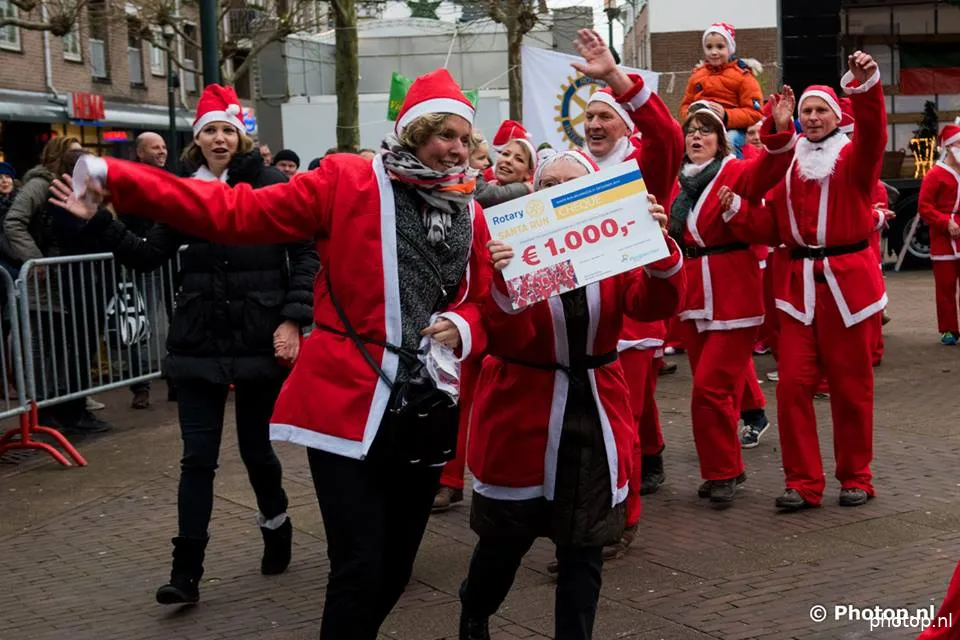 De organisatie overhandigde een cheque ter waarde van €1.000,- aan Stichting Perspectief voor de mantelzorgers in de gemeente . Een cheque van €1.500,- ging naar de voedselbank. Burgemeester Carol Van Eert luidde de kerstbel als startsein voor de Santa's.
