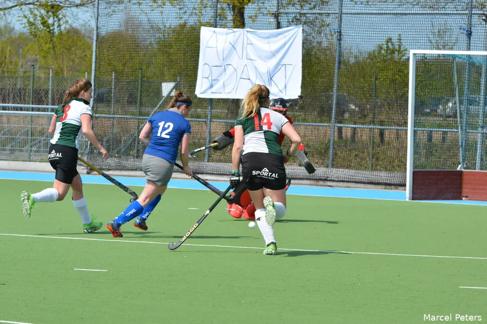 Beuningen begon deze helft sterk, maar ook GHBS gaf volle druk en liet zien te willen strijden voor iedere meter en het was belangrijk dat het veld groot gemaakt zou worden om zo ruimte te creëren voor de opbouw en om de aanvallers in stelling te zetten. Dat bracht na 6 minuten in de 2e helft direct resultaat. Lianne pikte de bal vroeg op, speelde Claudia de bal in en zij wist de bal op miraculeuze wijze tegen de plank aan te krijgen. Met nog 30 minuten op de klok kon de wedstrijd nog alle kanten op, maar Beuningen bleef lange tijd overwicht te hebben. Gelukkig klonk na een aantal zenuwslopende minuten het eindsignaal en doel 1 was gehaald: de overwinning. Een telefoontje naar Groningen was genoeg om te vernemen dat EHV had verloren waardoor de voorsprong van Beuningen op de nummer 3 twee punten blijft. In de allerlaatste wedstrijd zullen Beuningse vrouwen genoeg hebben aan een overwinning in de uitwedstrijd in Enschede om de play-offs te behalen.
