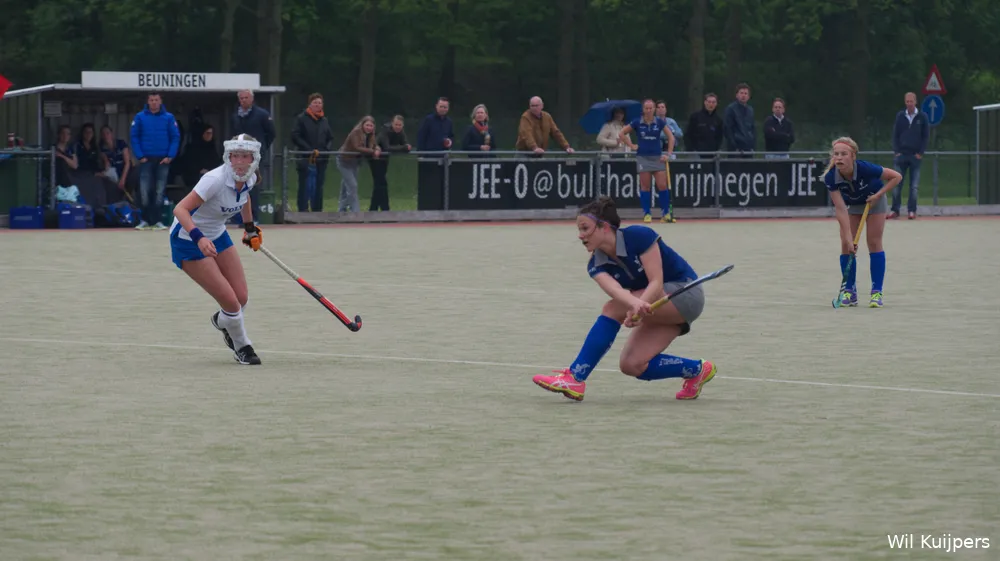 De tweede helft begon MB1 heel sterk en de wil om te winnen was zeker aanwezig. Er werden mooie combinaties gespeeld waardoor ze veel bij Venlo in de cirkel kwamen. Helaas kon Venlo een counter benutten waardoor Venlo opnieuw op een 2-1 voorsprong kwam. Beuningen bleef vechten en naar 45 minuten konden de meiden een strafcorner afdwingen. Helaas stond het slagkanon Merel Bruggeman niet in het veld waardoor er een variant gespeeld moest worden. De bal werd aangegeven door Judith Kuijpers wie de bal pushte naar Inge van de Klok, Inge speelde de bal naar Isa Peeters. Isa schoot heel hard laag voor de keeper langs. Judith kwam hier aanlopen en tipte de bal het goal in. Ongelofelijk wat een goal! Het was weer gelijk.
