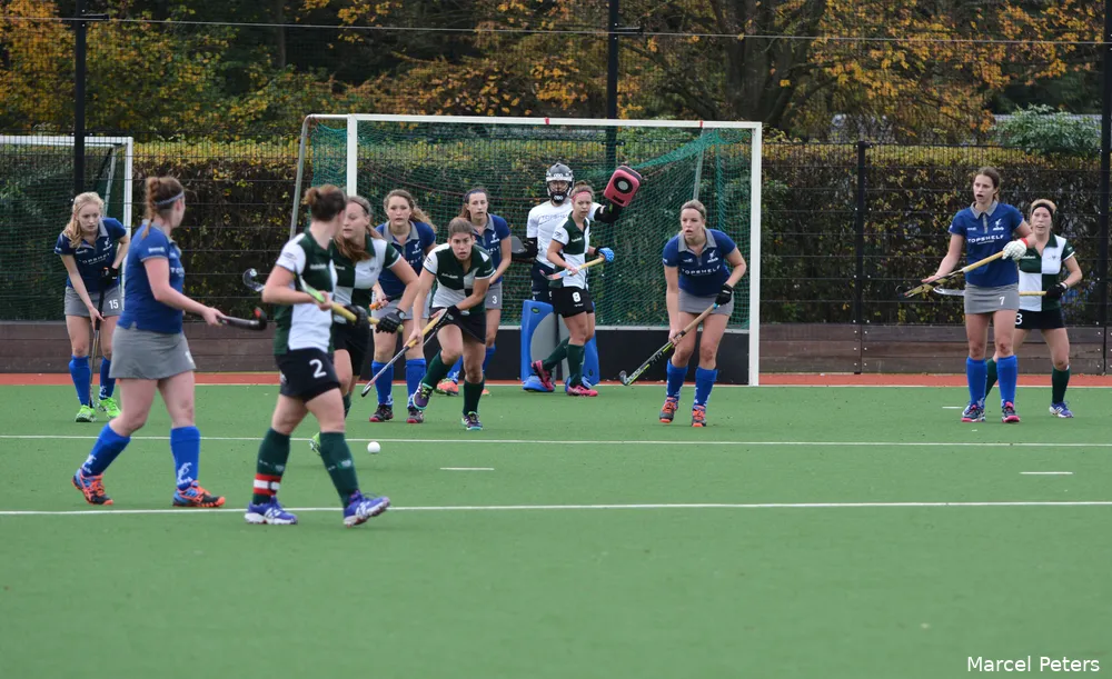 Helaas was het GHBS die scoorde. Maar aan de zijkant was duidelijk een shoot te zien en werd de scheidsrechter 'gedwongen' met de collega te overleggen. Doelpunt werd afgekeurd, maar vreemd genoeg werd het spel hervat met een strafcorner voor GHBS. Erg vreemde situatie, maar met de 1-2 voorsprong was toch een tevreden ruststand bereikt.