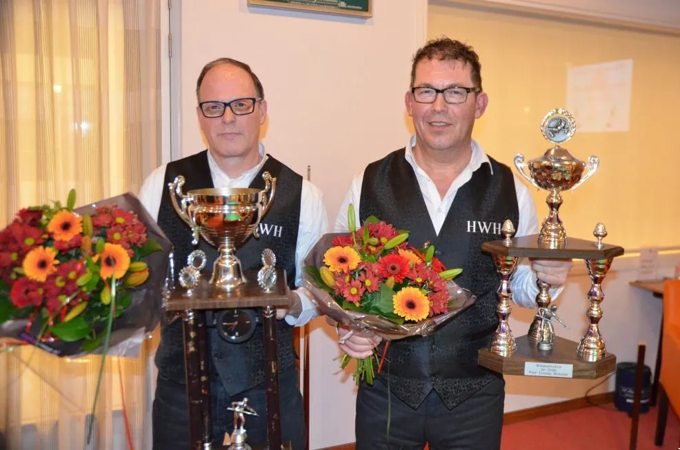 Na twee dagen en vijfendertig partijen was het tijd voor de finale, dit keer een zeer bijzondere. De gebroeders Sjaak en René van de Logt hadden het beste van het spel laten zien en mochten in het gezellig gevulde biljartcafé aantreden voor de laatste wedstrijd.